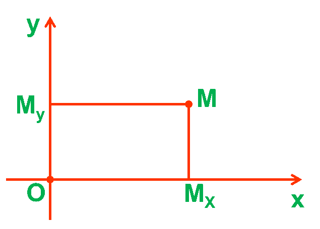 Toạ độ của vật ở vị trí M: \(x=\overline {OM} \) Toạ độ của vật ở vị trí M: \(x=\overline {OM_x} \) và \(y=\overline {OM_y} \)