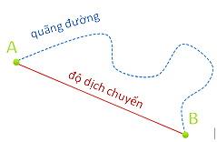 Độ dịch chuyển là 1 đại lượng véc tơ, có thể nhận giá trị dương, âm hoặc bằng 0 Trong khi quãng đường đi được là 1 đại lượng vô hướng, không âm