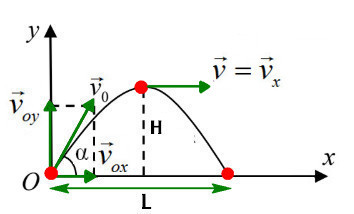 + Hình chiếu chuyển động lên phương thẳng đứng (Oy) đi lên nhanh dần đều, đi xuống chậm dần đều.